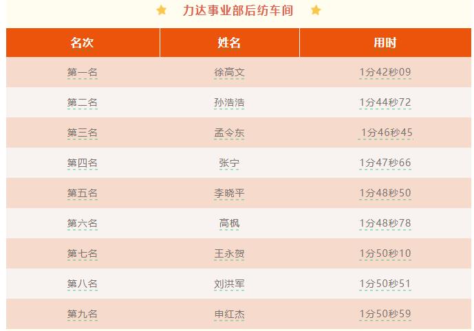 कर्मचारियों के पेशेवर कौशल को बढ़ाने और अपने काम के उत्साह को उत्तेजित करने के लिए, कंपनी ने 2024 की चौथी तिमाही के लिए एक घुमावदार ऑपरेशन प्रतियोगिता का आयोजन किया। तीव्र प्रतिस्पर्धा के बाद, दो व्यावसायिक इकाइयों की कताई कार्यशालाओं से 15 वाइंडिंग श्रमिकों ने ठोस परिचालन कौशल के साथ जीता। विजेताओं की सूची अब निम्नानुसार घोषित की गई है: